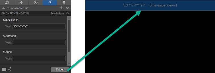 Beispiel Mitteilung «Auto umparkieren»
