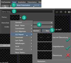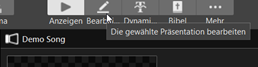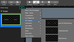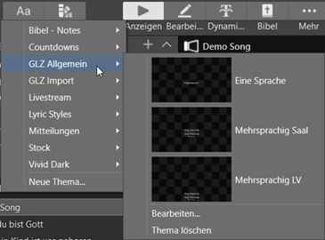 Am Ende der Liedeingabe muss noch das richtige Thema für die Anzeige auf die Präsentation angewendet werden.